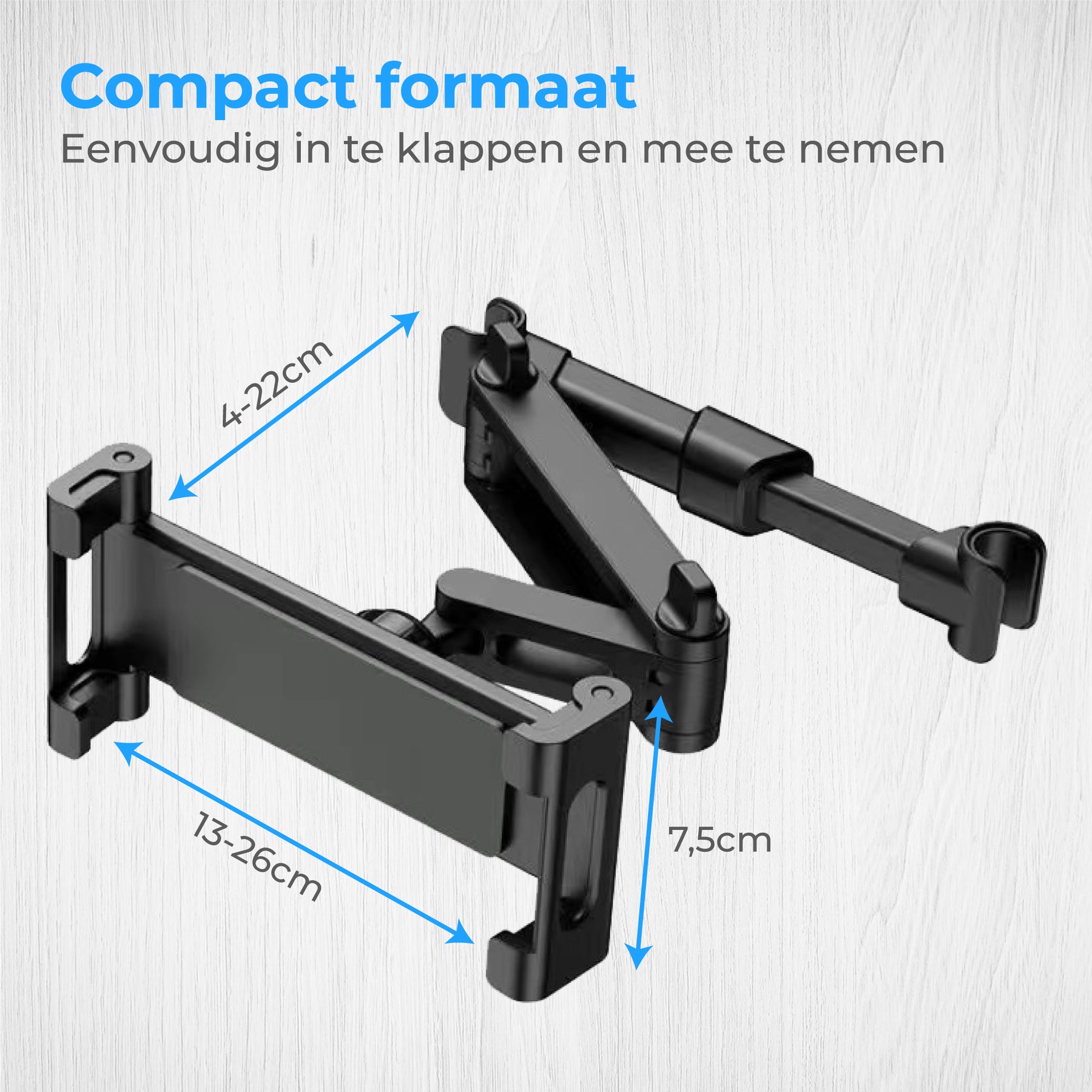 • Stabiele bevestiging: stevige klemmen houden de tablet veilig vast;
