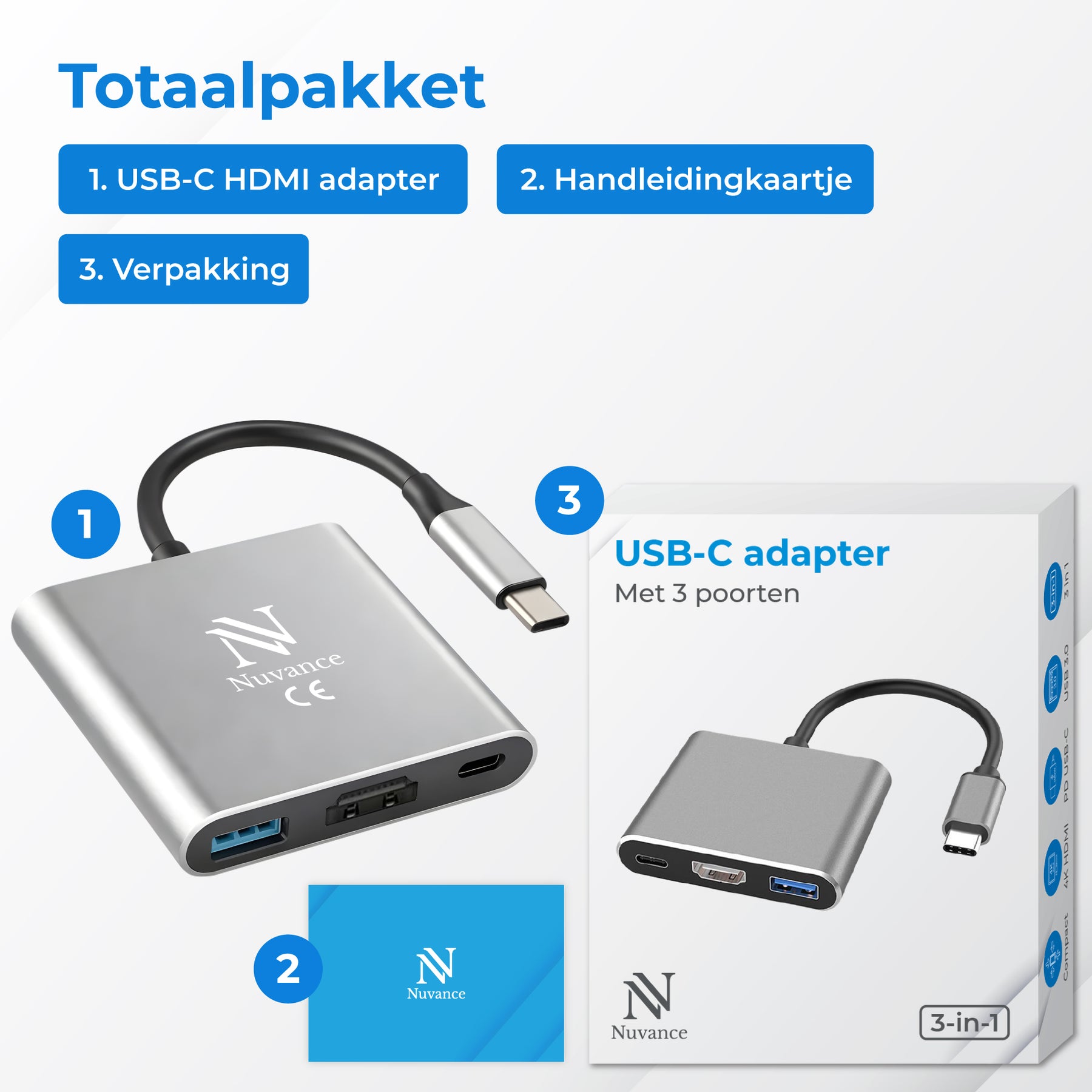 • 1x Nuvance USB C naar HDMI Adapter;