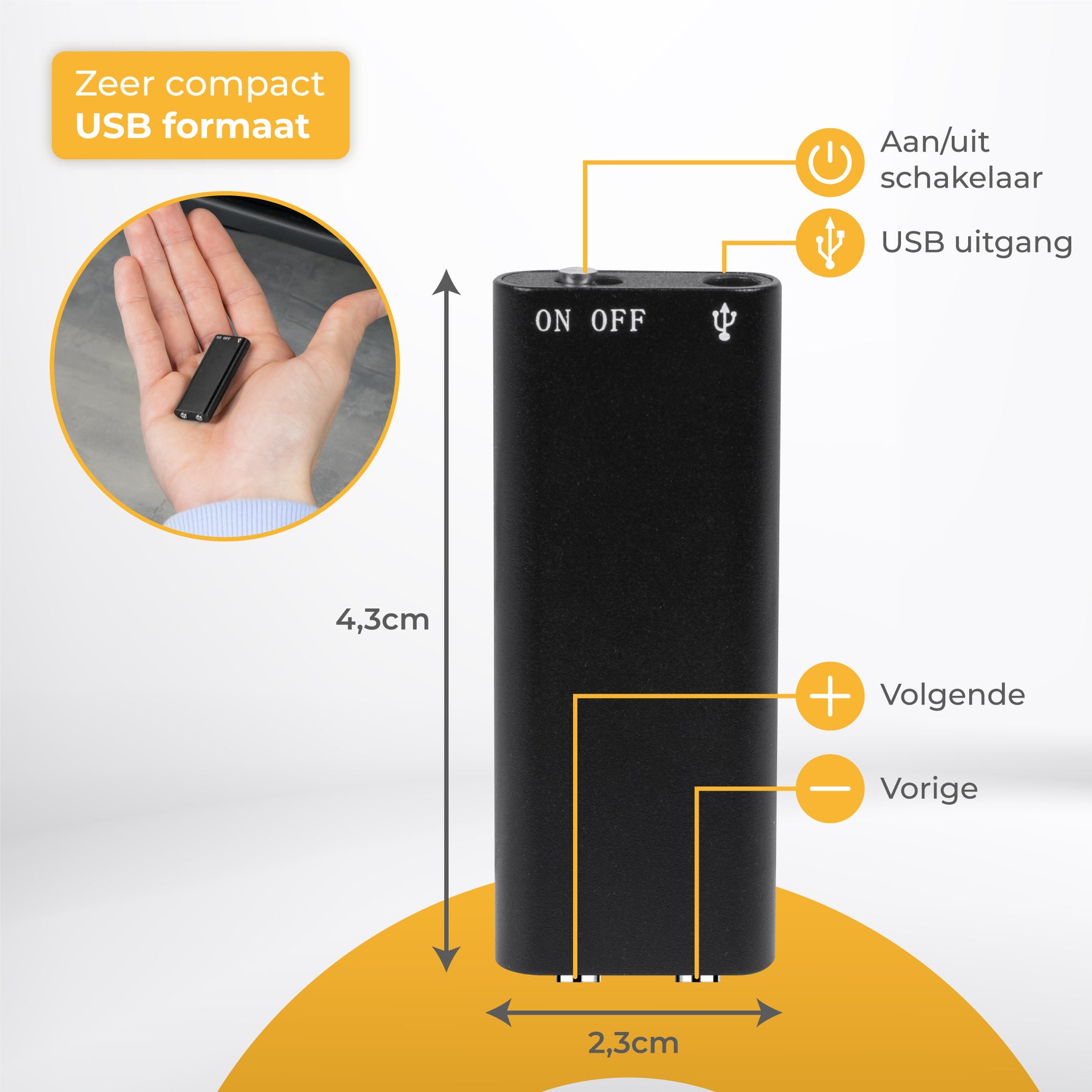 - Compact formaat en eenvoudig te verstoppen;