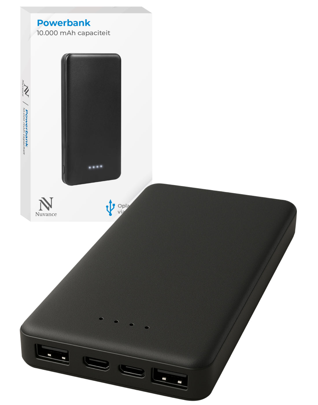 Ontdek de ultieme krachtbron voor onderweg met de Nuvance powerbank 10000 mAh. Deze compacte, krachtige powerbank zorgt ervoor dat je nooit zonder batterij zit, waar je ook bent.