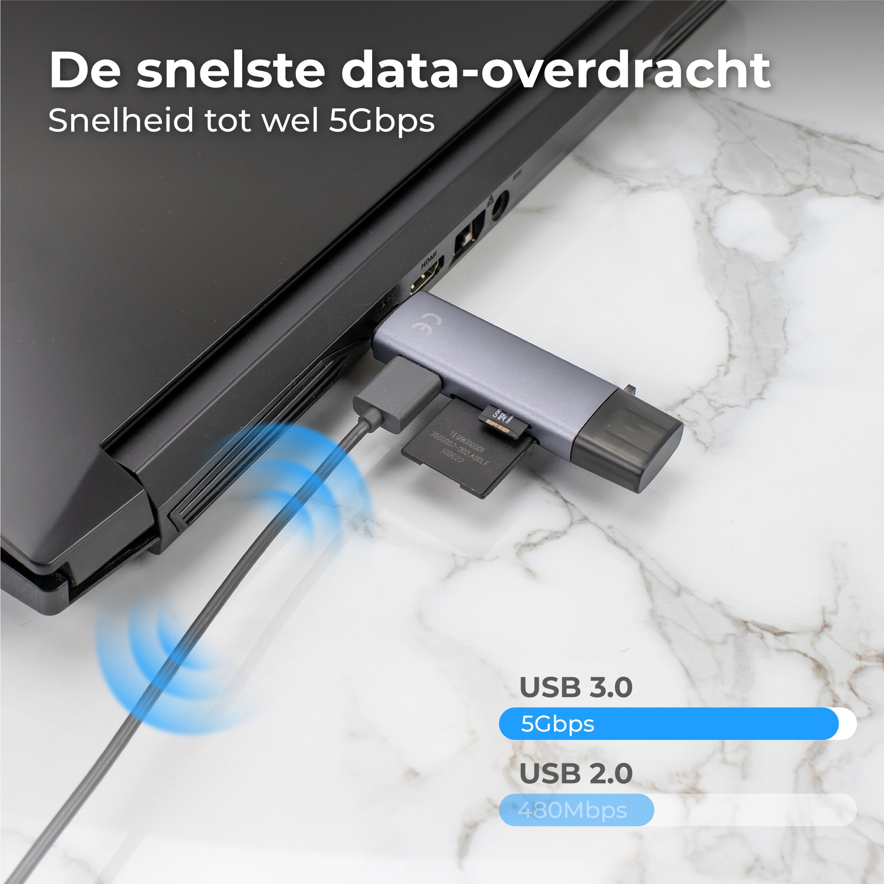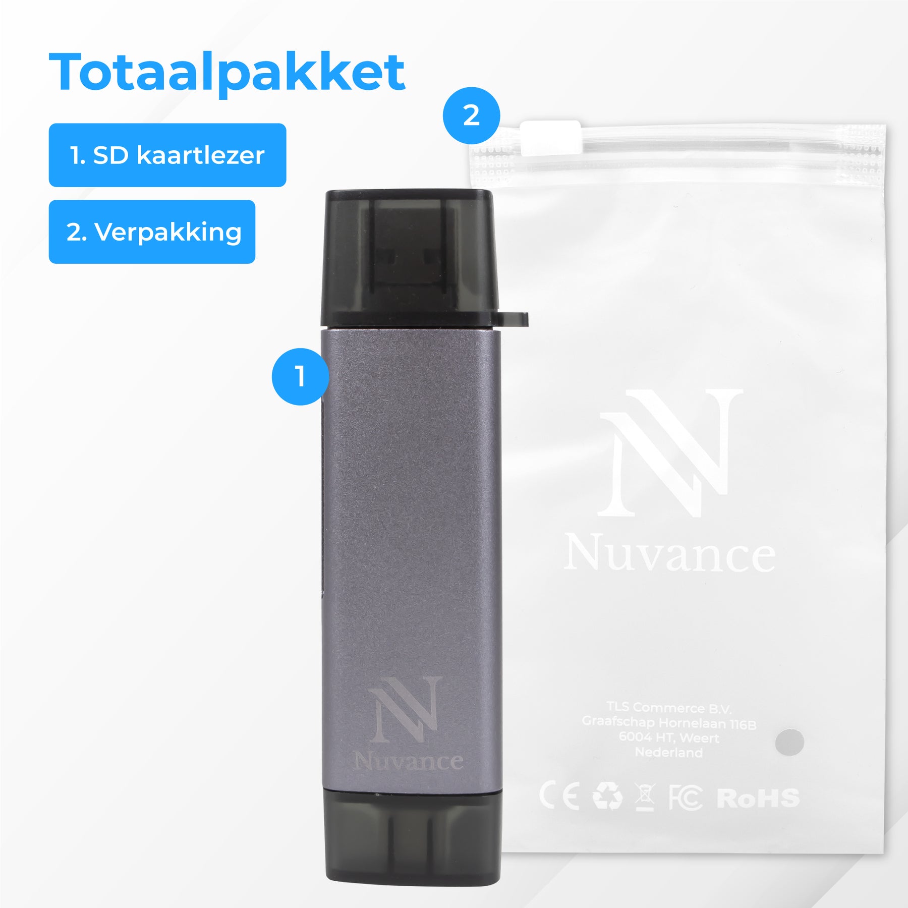 Snel je foto’s, video’s of documenten overzetten? De Nuvance SD kaart lezer maakt het eenvoudig en efficiënt. Dankzij aansluitingen voor USB, USB-C én Micro-USB gebruik je hem op vrijwel elk apparaat – van laptop tot smartphone.