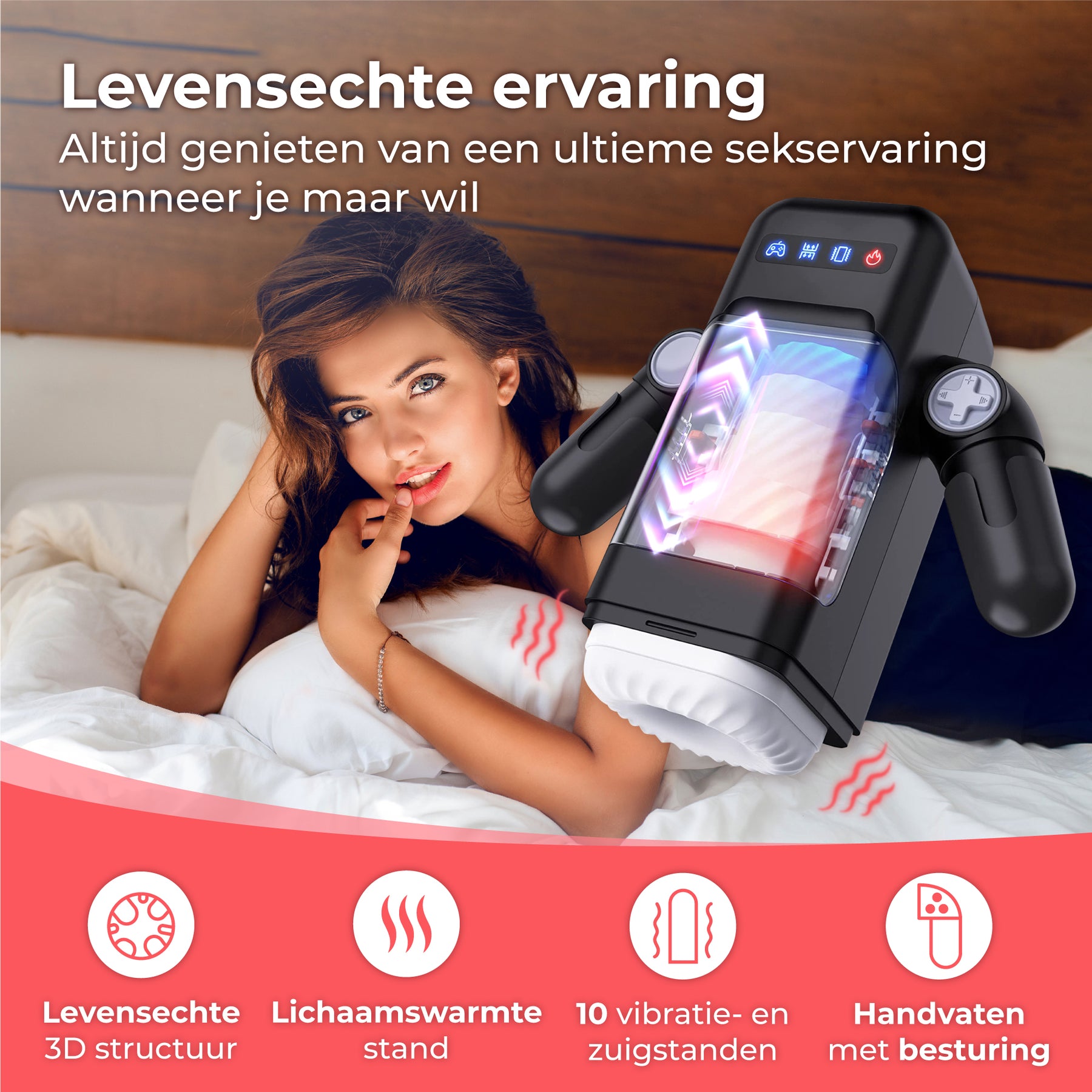 Zoek je een masturbator die verder gaat dan standaard stimulatie? De pocket pussy van Nuvance combineert 10 vibratiestanden, een aangename warmtefunctie en een geïntegreerde telefoonhouder.