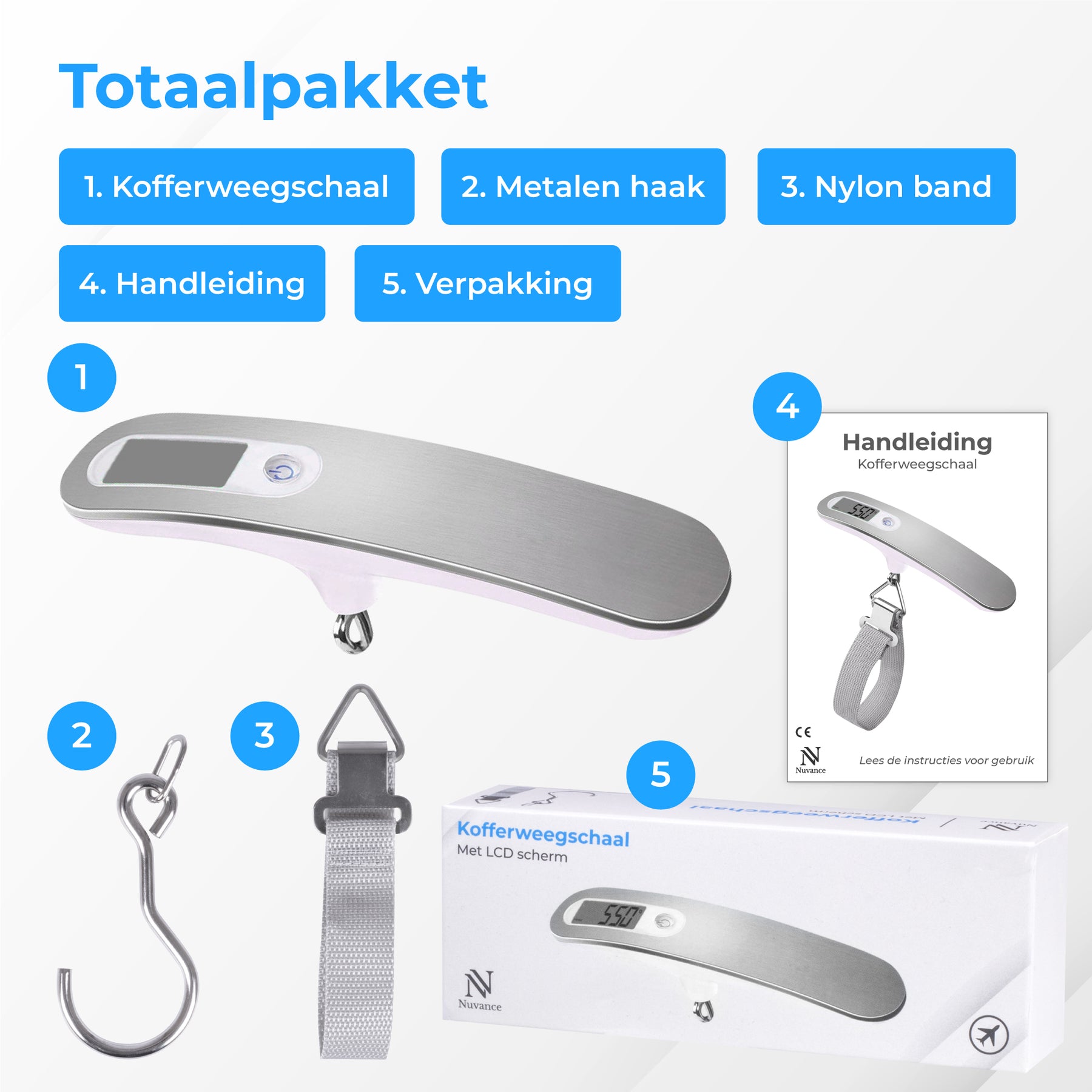 • 1x Nuvance digitale kofferwegerschaal;