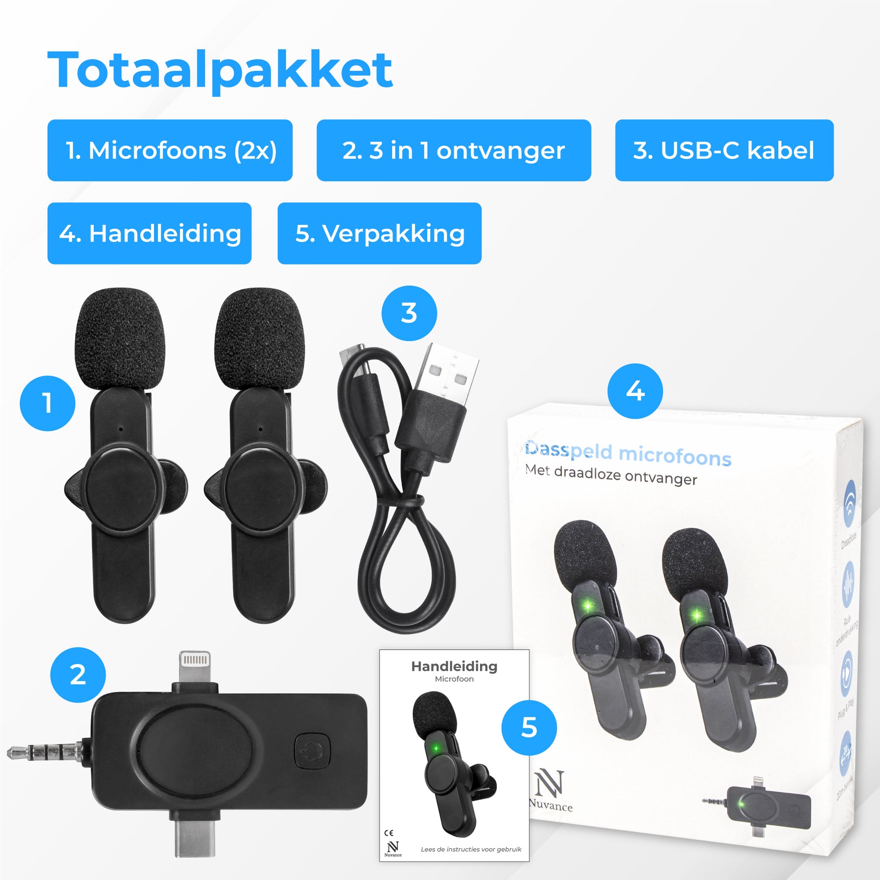 Verhoog je opnamekwaliteit met de Nuvance microfoon draadloos set en ervaar ultieme vrijheid en gebruiksgemak!