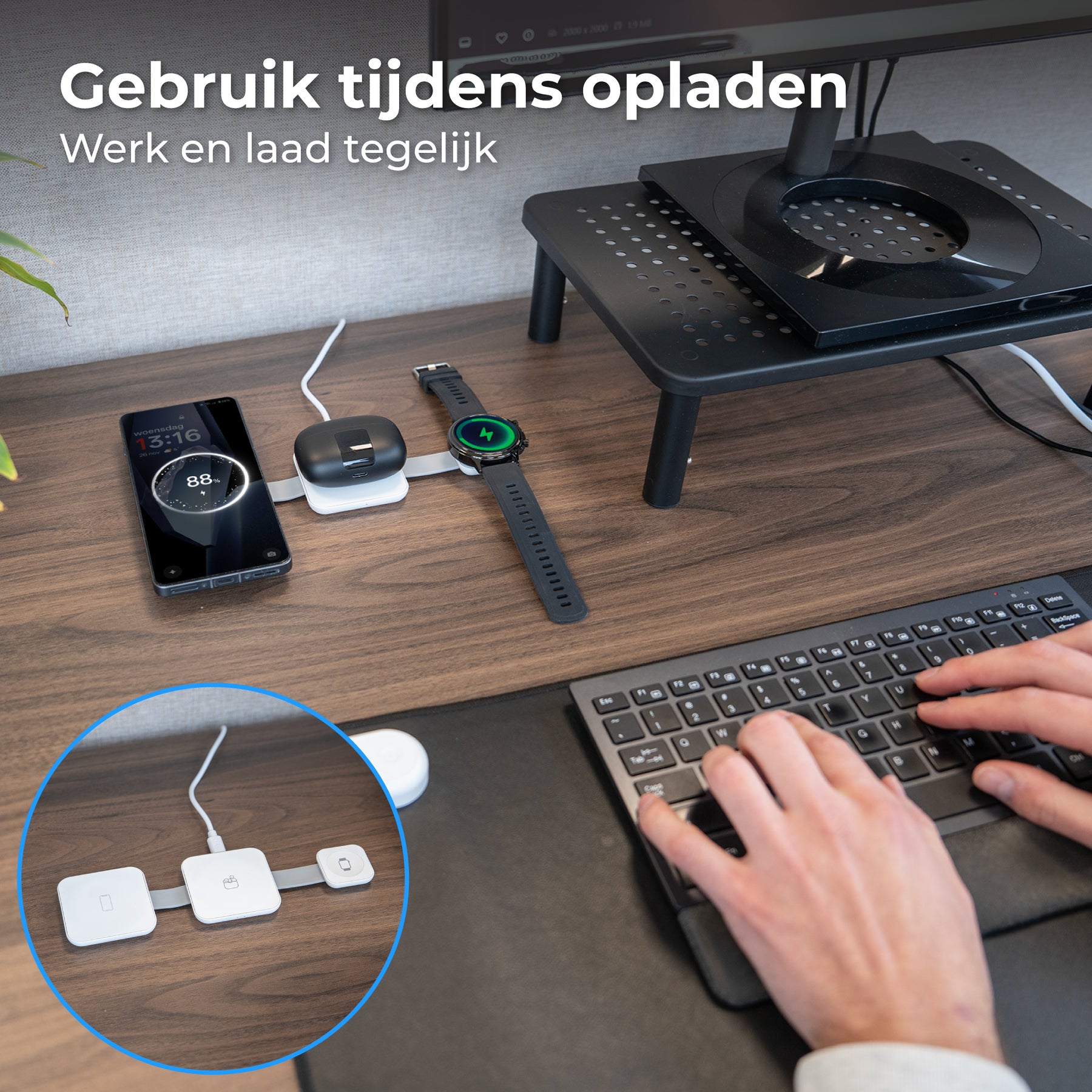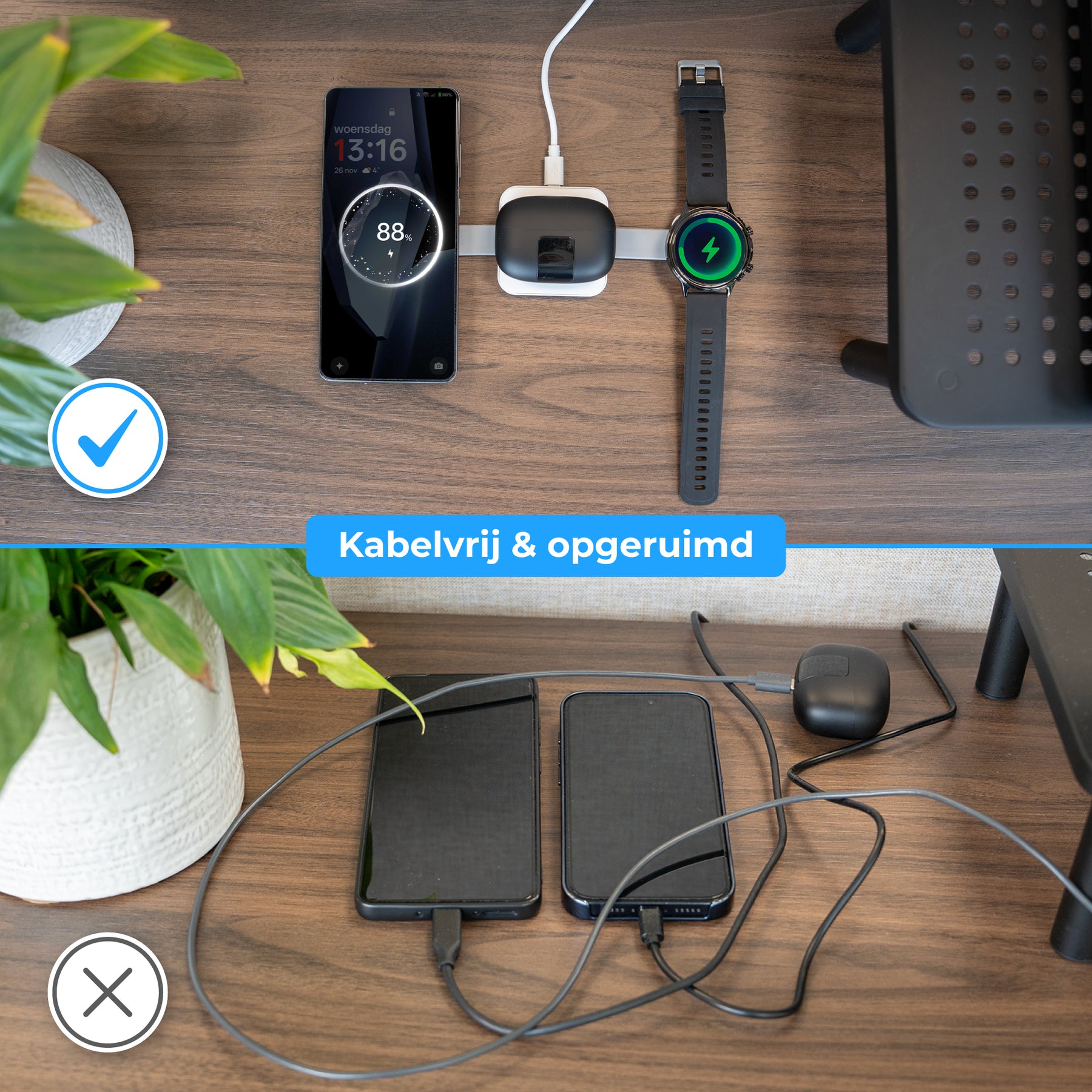 Meerdere laadvlakken: tot wel 3 verschillende apparaten tegelijk opladen;