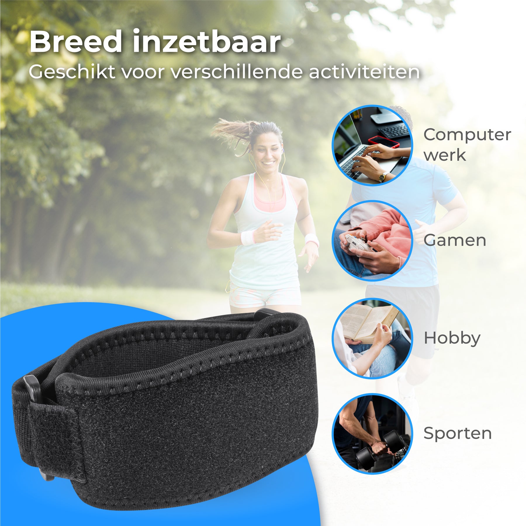 • Multifunctioneel in gebruik: Inzetbaar op elleboog, onderarm, en meer;