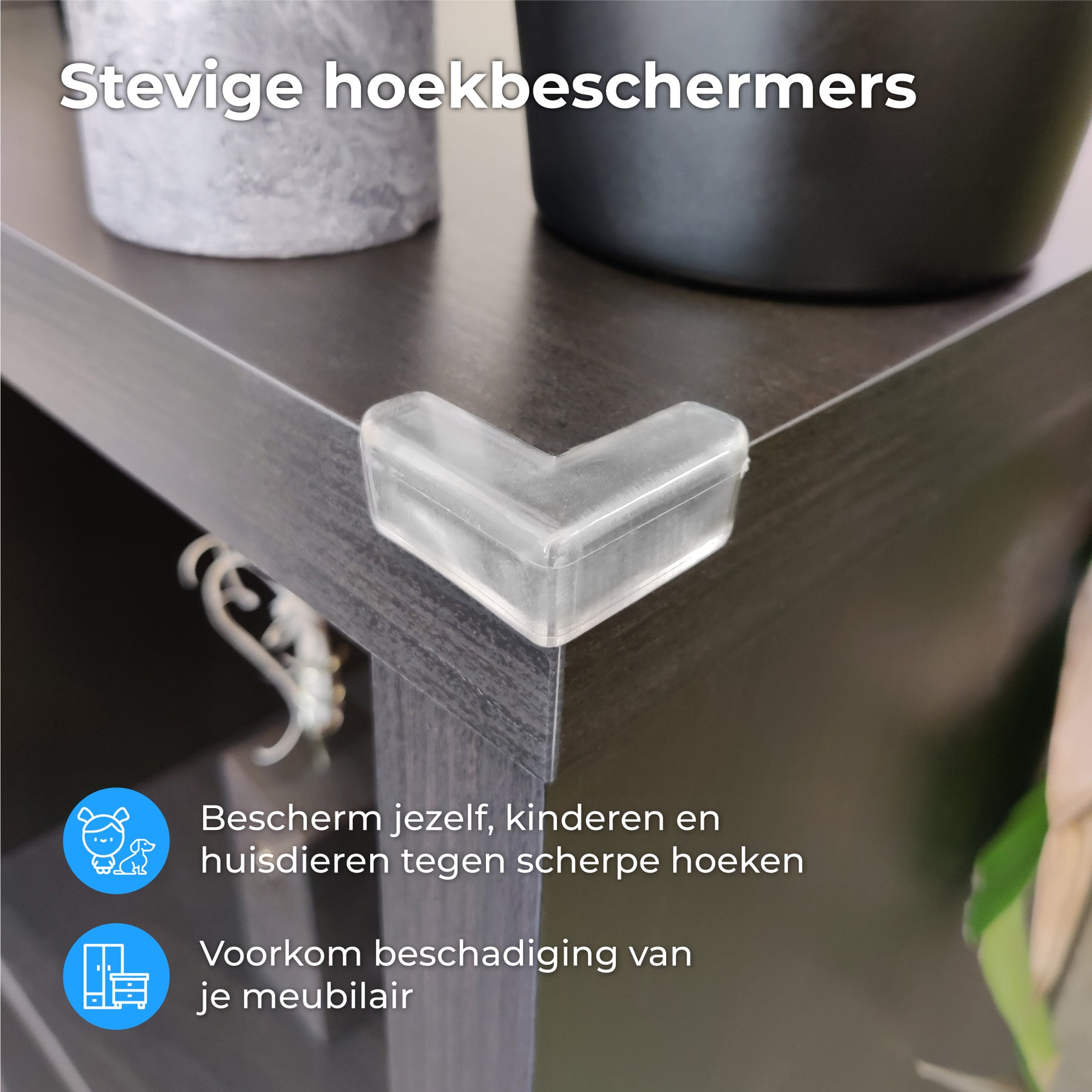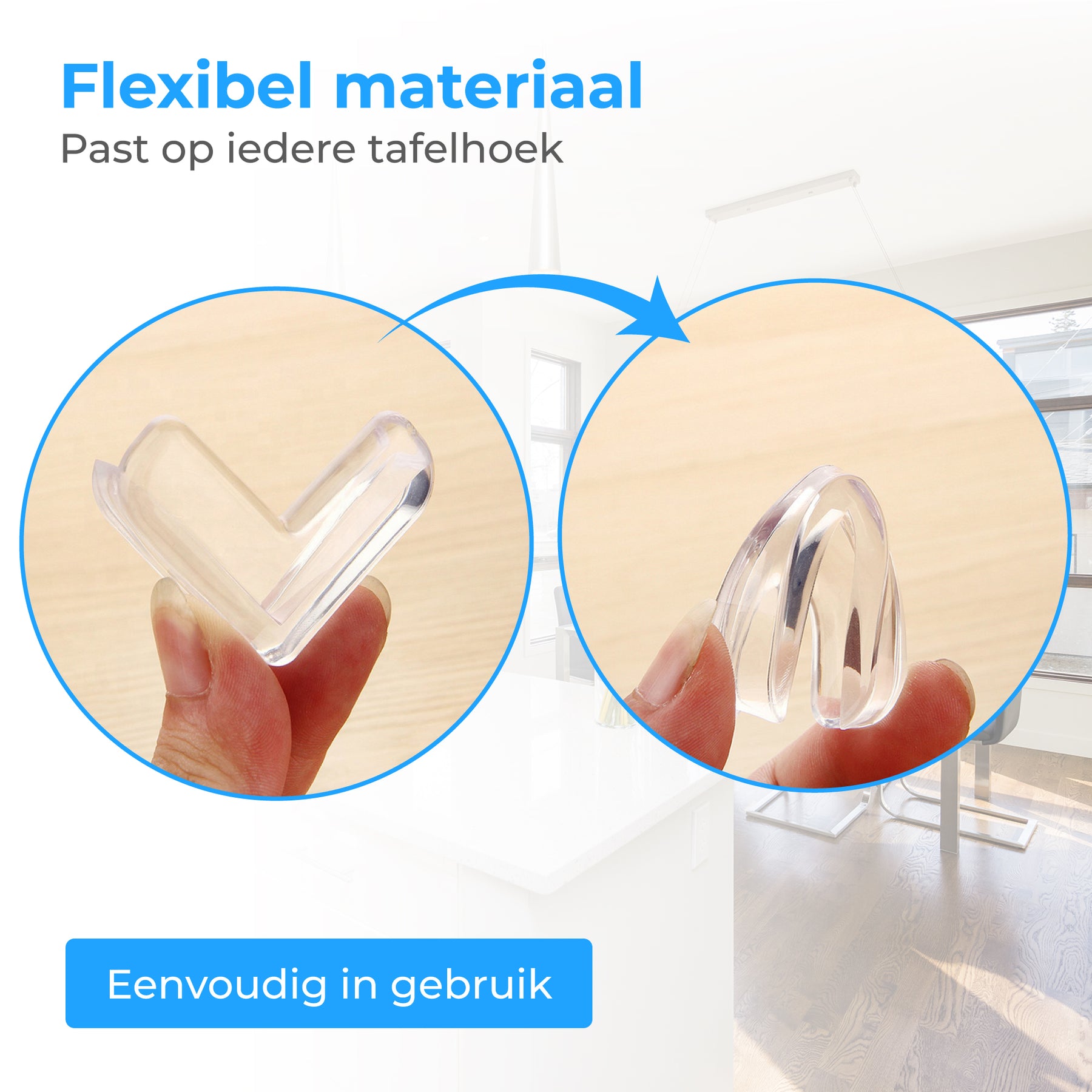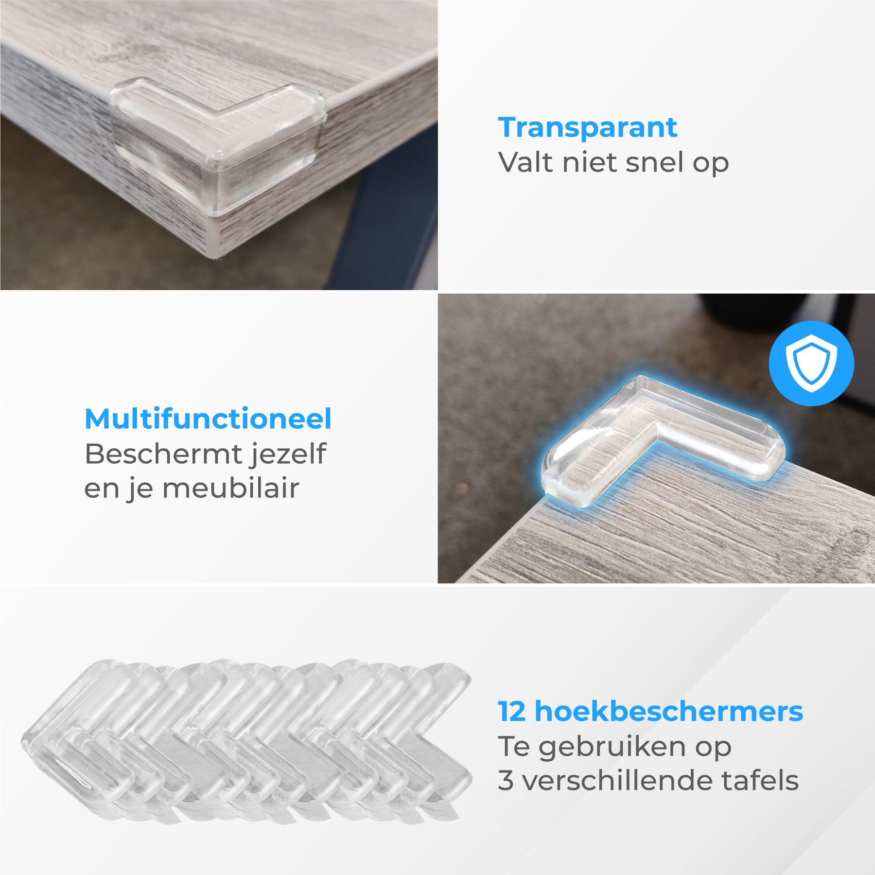 Bescherm je kinderen tegen scherpe tafelhoeken met de transparante Nuvance hoekbeschermers.