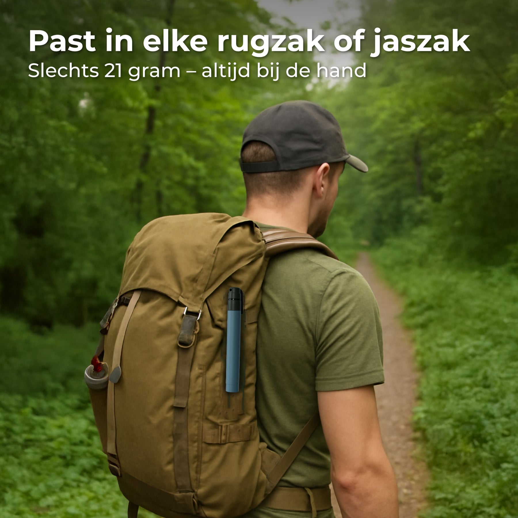 Altijd voorbereid met het waterfilter dat vertrouwen geeft, waar je ook bent. Of je nu diep de natuur in trekt of zekerheid zoekt voor thuis: dit compacte, BPA-vrije waterzuiveringsapparaat past moeiteloos in je survival kit of noodpakket. Licht als een veertje, krachtig als een betrouwbare metgezel - en altijd klaar om jou van schoon drinkwater te voorzien.