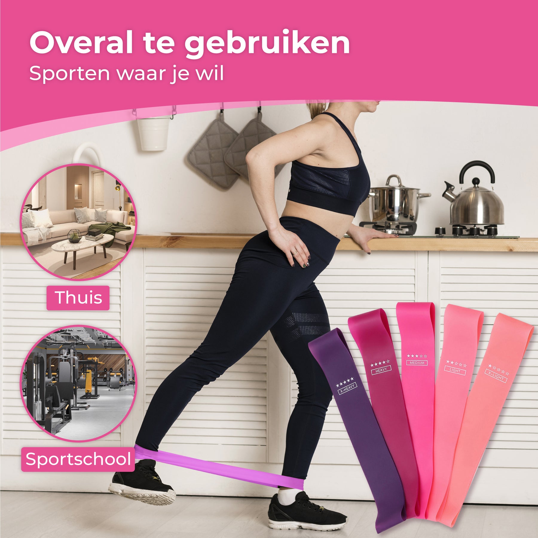 Ontdek hoe eenvoudig je je lichaam actief kunt houden met de 5-delige weerstandsbanden set van Nuvance, voor elke dag en elk moment.