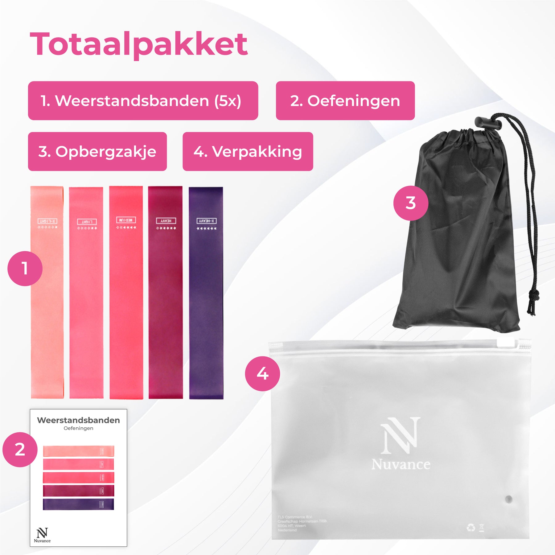 • 5x Nuvance Weerstandsbanden (X-Light t/m X-Heavy);